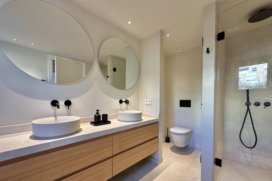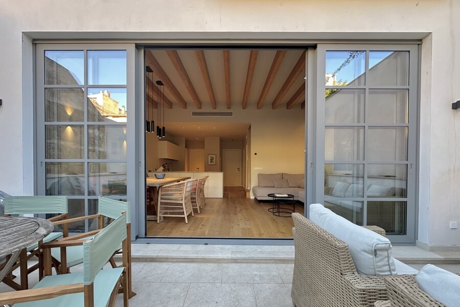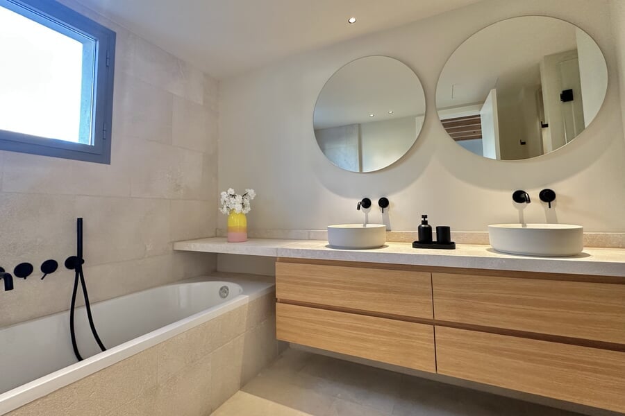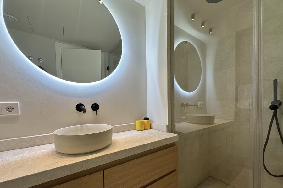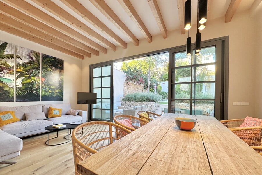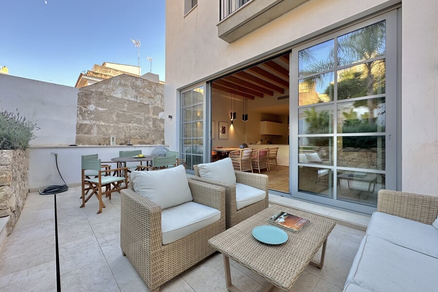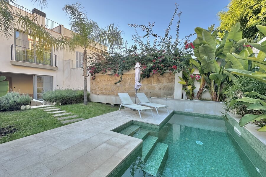 Disponible para alquiler temporal. Lujosa casa adosada nueva en la popular y encantadora zona de Son Espanyolet, a solo un corto paseo de Santa Catalina. La planta baja cuenta con un amplio salón con zona de comedor y cocina abierta, así como un aseo para invitados. En la primera planta hay tres dormitorios y dos baños, uno de ellos en suite. La zona exterior de la planta baja invita a relajarse con una hermosa piscina, una ducha exterior y dos acogedores espacios para sentarse. En la planta baja hay un despacho equipado con una silla Herman Miller y un escritorio regulable en altura. La casa adosada ha sido construida con materiales de alta calidad y diseño elegante, y se alquila completamente amueblada. Otras características incluyen calefacción por suelo radiante, aire acondicionado, lavadora y secadora.