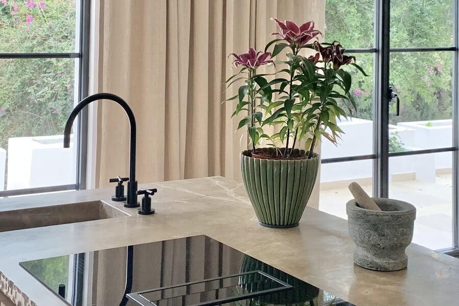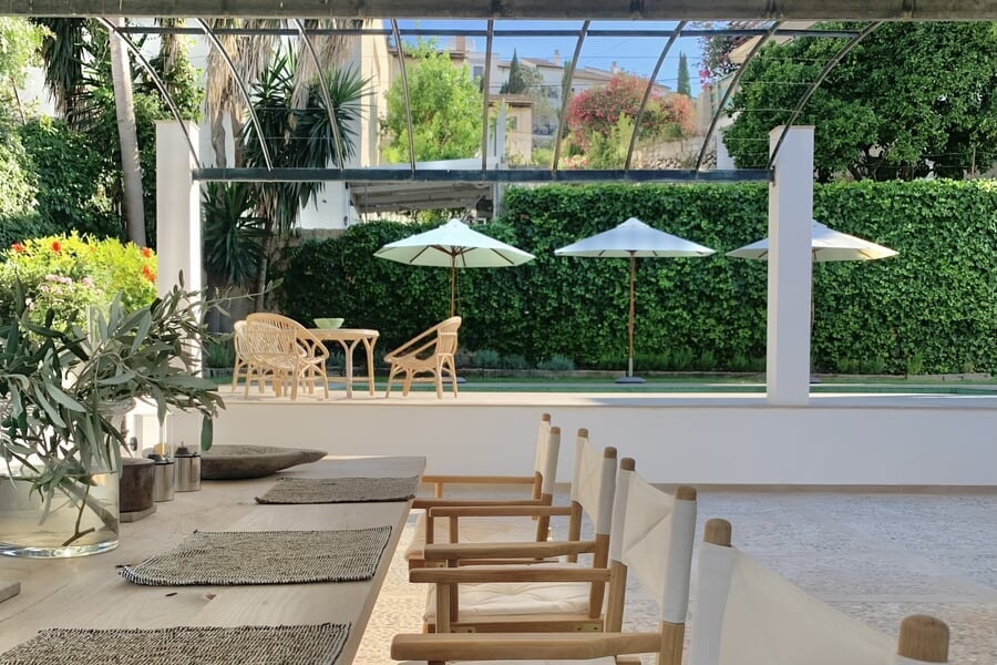 Disponible para alquiler temporal. Situado en el lujoso barrio del Pueblo Español, esta extraordinaria casa combina la arquitectura mediterránea atemporal con una refinada estética escandinava moderna. Diseñada originalmente en 1981 por un reconocido arquitecto español y renovada completamente en 2019 por la prestigiosa interiorista europea Lotta Agaton, la propiedad ofrece una fusión única de historia, sofisticación y confort. Con una superficie habitable de aproximadamente 250 metros cuadrados, la vivienda está concebida para disfrutar de una vida interior-exterior fluida. El suelo de piedra caliza marroquí golpeada a mano se extiende por toda la casa, brindando una sensación natural y acogedora. Las amplias ventanas francesas de diseño danés inundan de luz natural los espacios interiores y se abren a un patio con capacidad para 14 comensales, ideal para cenas al aire libre. La cocina, hecha a medida in situ por un ebanista sueco, cuenta con encimeras de mármol mallorquín, una gran mesa para 10 personas y grifería de alta gama de Dornbracht (Alemania). El salón está amueblado con piezas icónicas de Dux (Suecia) y Living Divani (Italia), y los dormitorios ofrecen máxima comodidad con una cama Hästens en la suite principal y camas de lujo de IKEA en los cuartos adicionales. Entre sus prestaciones destacan la calefacción por suelo radiante en toda la casa, aire acondicionado en todas las estancias y sistema de sonido Sonos integrado. En el exterior, una piscina privada de 9 x 4,5 metros rodeada de muebles de diseño danés de Skagerak y Fritz Hansen crea un ambiente exclusivo. Un garaje de 140 metros cuadrados completa la propiedad. Otros detalles de diseño incluyen lámparas y mesas de Cassina (Italia) y alfombras de Layred, todo seleccionado con precisión para una experiencia de vida armoniosa y lujosa.