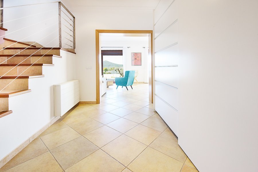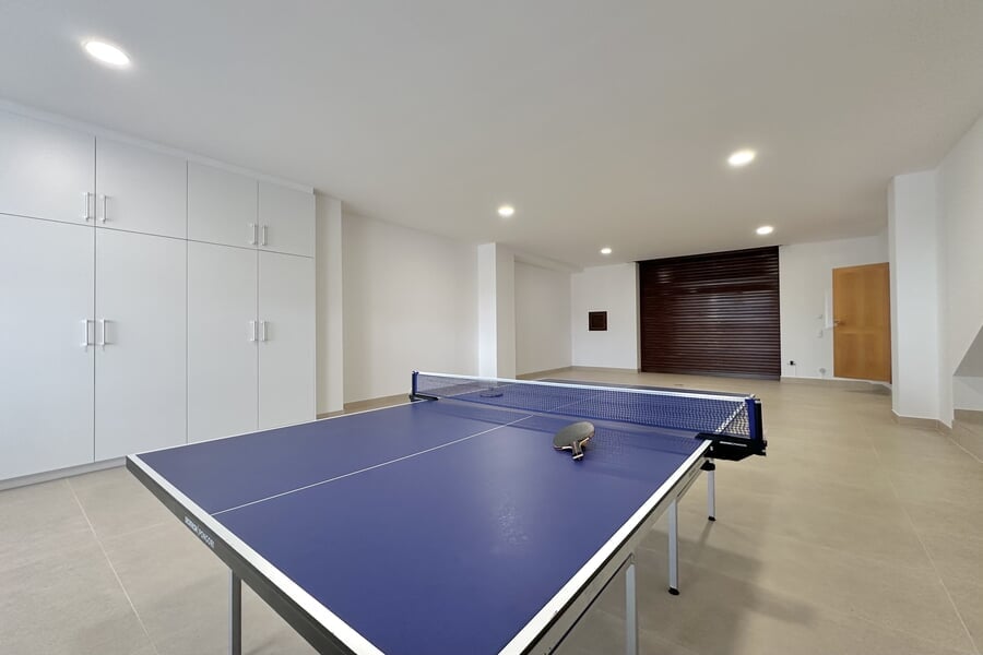 La propiedad consta de 260 metros cuadrados de los cuales aproximadamente 100 metros cuadrados de terraza con piscina y garaje de 160 metros cuadrados con cocina y baño. En el primer piso se encuentra la entrada, la amplia sala de estar y comedor, una cocina totalmente equipada, dos habitaciones dobles, otra habitación más pequeña y un baño. Todas las habitaciones tienen acceso a la terraza o balcón. En el nivel superior se encuentra el dormitorio principal con vestidor y baño en suite con jacuzzi, así como un estudio de aproximadamente 15 metros cuadrados. Ambas habitaciones también tienen acceso a un balcón. La casa está equipada con todo, cocina completa, lavavajillas, vitroceramica, cuberteria, 2 frigorificos más 1 congelador completo, 2 lavadoras y 1 secadora, plancha, calefaccion central y agua caliente gasoil/ placas solares, aireacondicionado y parabolica.