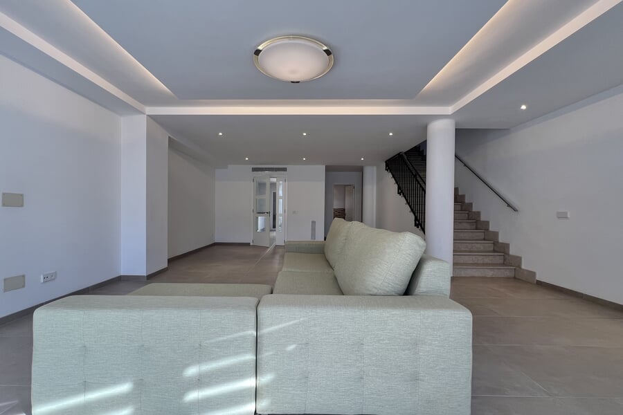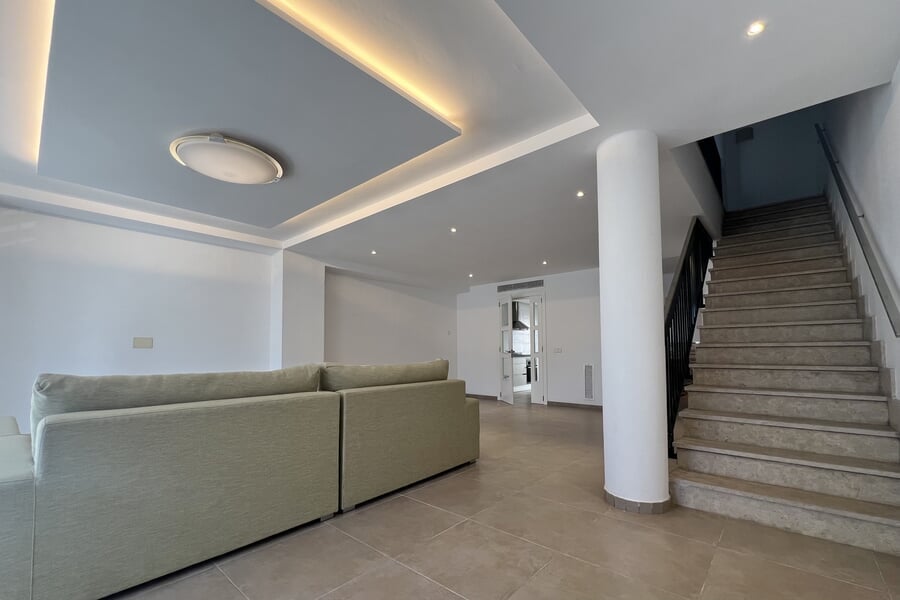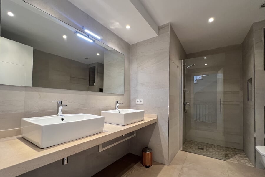 Charming house with a very good location in Porreres, completely renovated with top-quality materials. On the ground floor, it has a large garage with space for several cars. The first floor features a spacious living room, kitchen, laundry room, pantry, and a patio. On the second floor, there are three bedrooms and three bathrooms, one of them en suite; all rooms have air conditioning (hot and cold) and the possibility to install underfloor heating. The top floor includes a solarium with views of the picturesque village. A unique and elegant property.