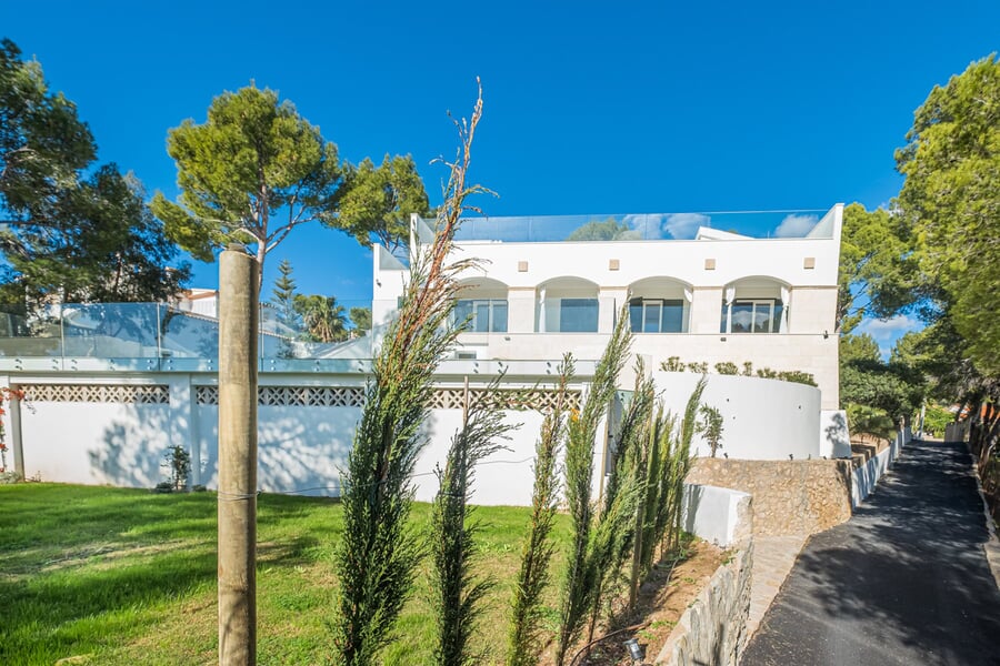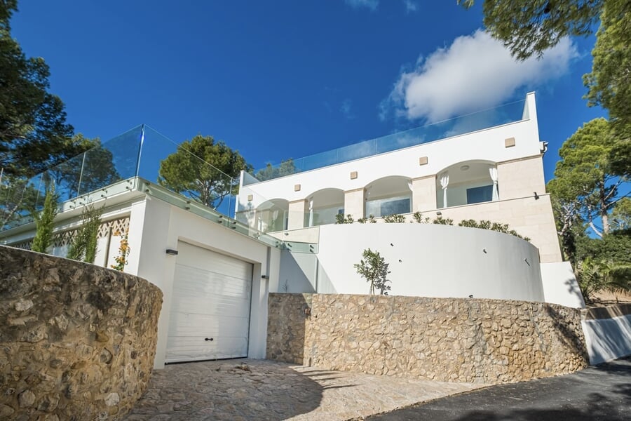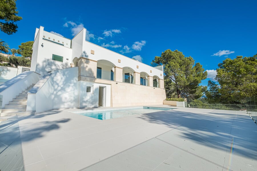 This exclusive villa was built in autumn 2020 to Swiss quality standards, combining traditional exterior architecture with a modern Mediterranean interior of timeless elegance. High-quality, low-maintenance materials, a designer kitchen equipped with appliances by Gaggenau, underfloor heating and air conditioning via heat pump, as well as alarm system, video surveillance and Wi-Fi ensure maximum comfort. Several spacious terraces, a pergola, a rooftop terrace and the glass mosaic pool create outstanding outdoor areas with great privacy and unobstructed sea views. The villa offers 4 bedrooms, 5 bathrooms, 266 m² of living space on a 1,400 m² plot.