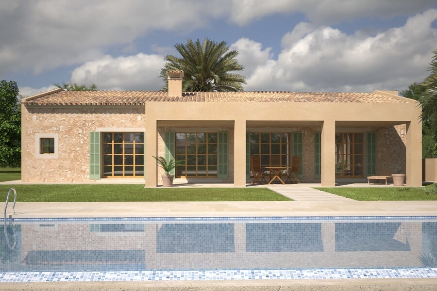 Set on a private plot of over 14,200 m², this newly designed single-family home offers a perfect blend of traditional Mallorcan architecture and modern comfort. The ground floor features an open-plan living, dining, and kitchen area, along with three bedrooms and three stylish bathrooms. A garage, laundry room, and pantry add to the property’s functionality.