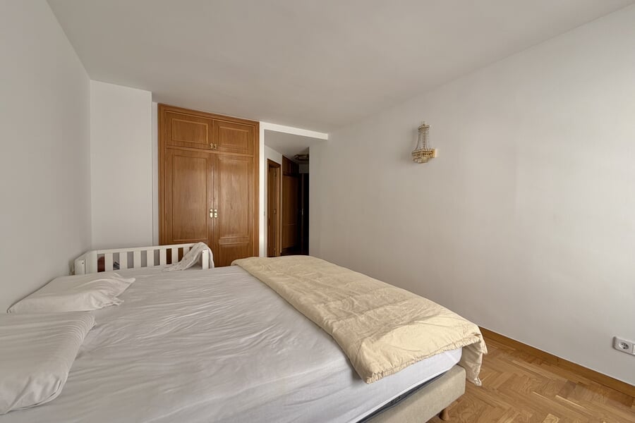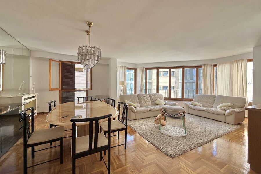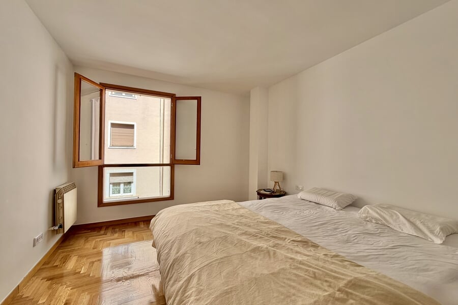 Available from June. This spacious apartment of approximately 200 sqm is located on the third floor of a quiet and very well-maintained building in the heart of Palma, just a few steps from the Ramblas. The location is one of the most sought, after in the city, central, yet quiet and pleasant. The apartment offers four generous bedrooms, three modern bathrooms, and a well-thought-out layout with plenty of natural light. High-quality materials and stylish finishes highlight the elegant character of the property. It is offered partially furnished. Central heating and air conditioning ensure a high level of comfort.
