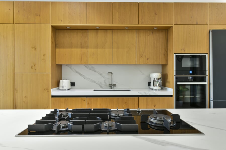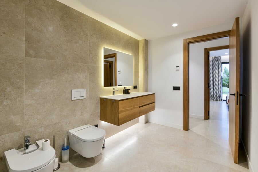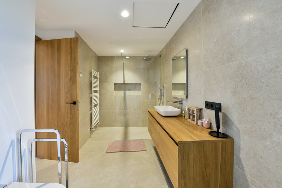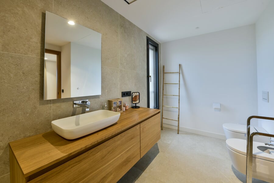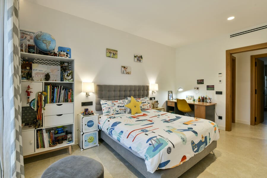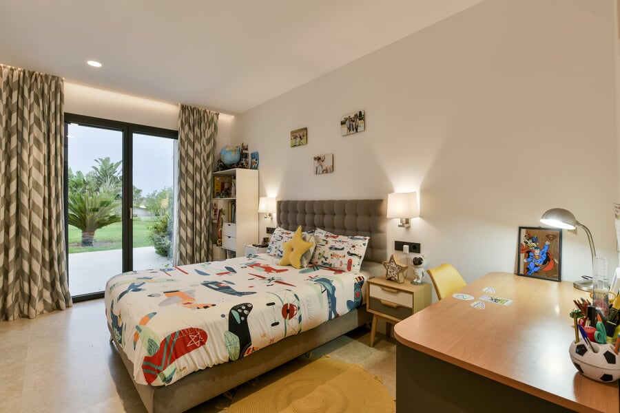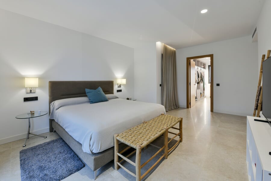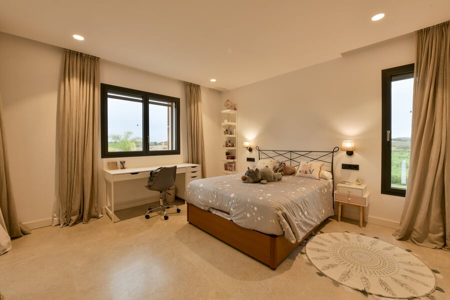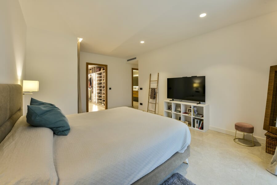 This modern and luxurious home features four spacious bedrooms and four elegant bathrooms, one of which is located directly by the pool. The outdoor areas offer a beautiful pool, expansive terraces, and a well-kept garden. The property is spread over two levels and is fully furnished. High-quality features such as underfloor heating, hot/cold air conditioning, and a solar energy system ensure maximum comfort. Behind the kitchen, there is also a separate room where utensils can be conveniently stored. A stylish, light-flooded home with an exclusive atmosphere.
