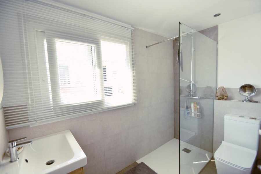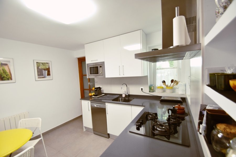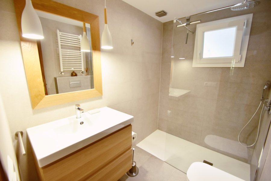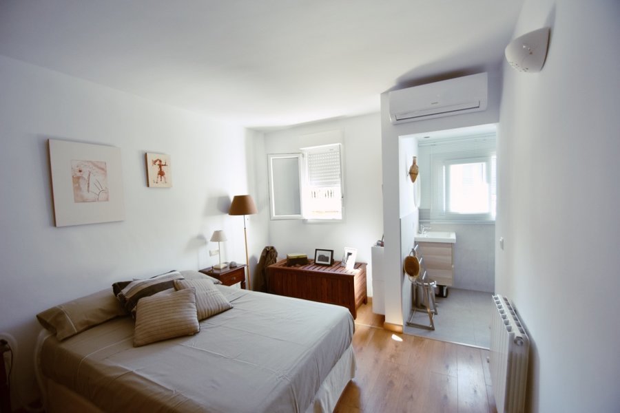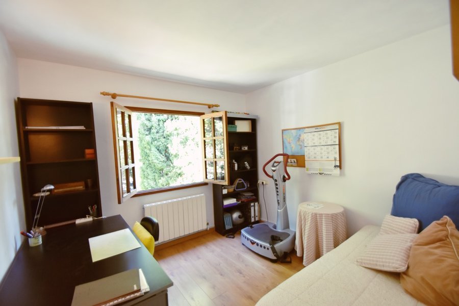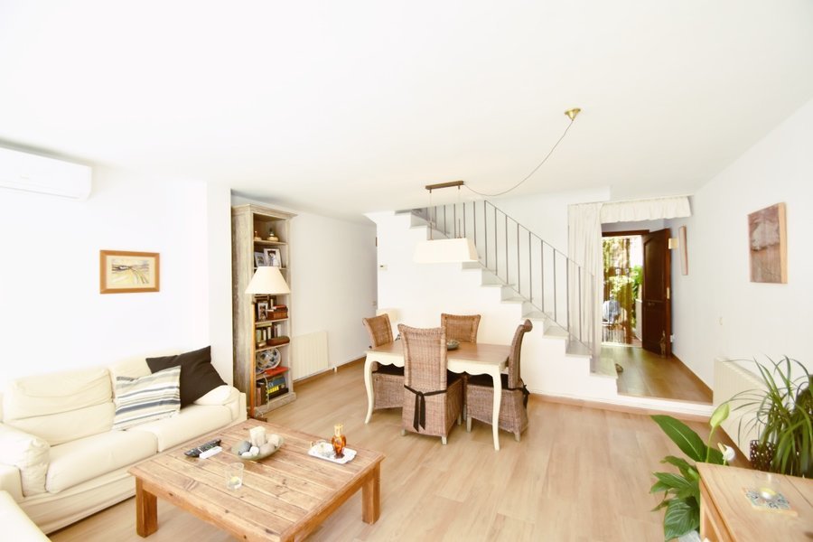 This nice and comfortable terraced house is located in a quiet surrounding, in the residential area of Secar de la Real, just 5 minutes’ walk to the Son Espases hospital. In front of the house there is an approximately 30m2 area for a car, but this space can also be used as a terrace or for bicycles or motorbikes. On the ground floor there is the fully equipped kitchen with adjoining laundry room, a living and dining area with access to the rear terrace, which is also approx. 30m2 and a guest toilet. On the upper floor there is a double bedroom with bathroom en suite, another bathroom and two other smaller bedrooms. All bedrooms have fitted wardrobes. The house offers gas central heating and air conditioning in the master bedroom and living area. The property is rented unfurnished. Shops, bars and restaurants as well as public transport are within walking distance.